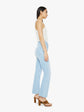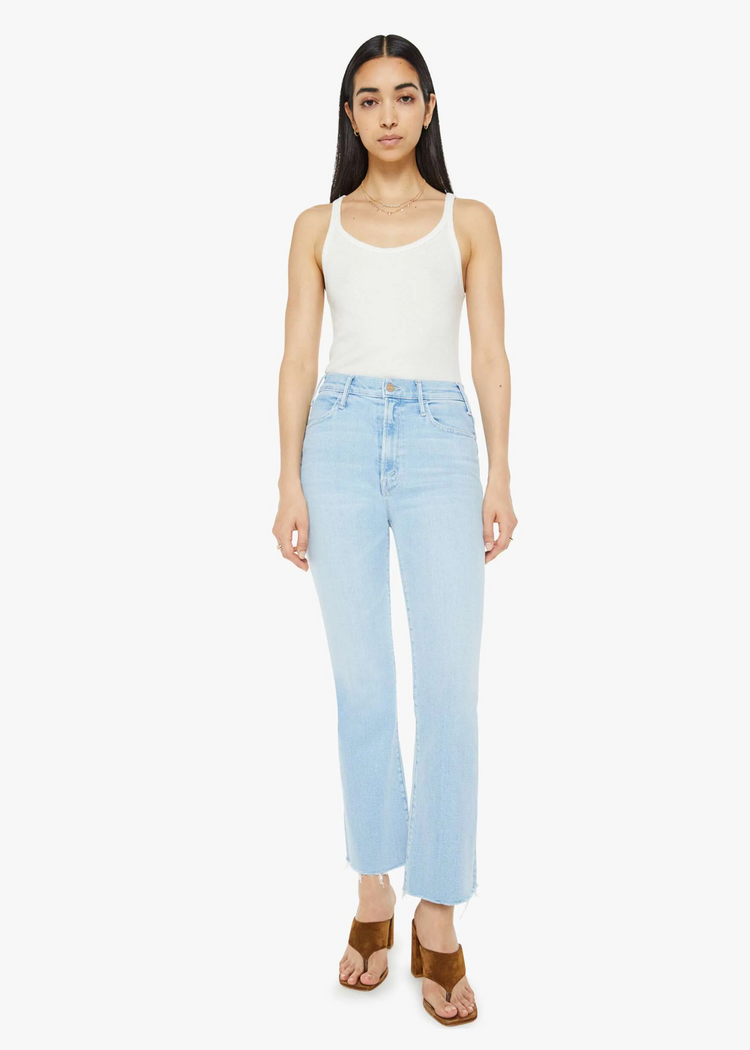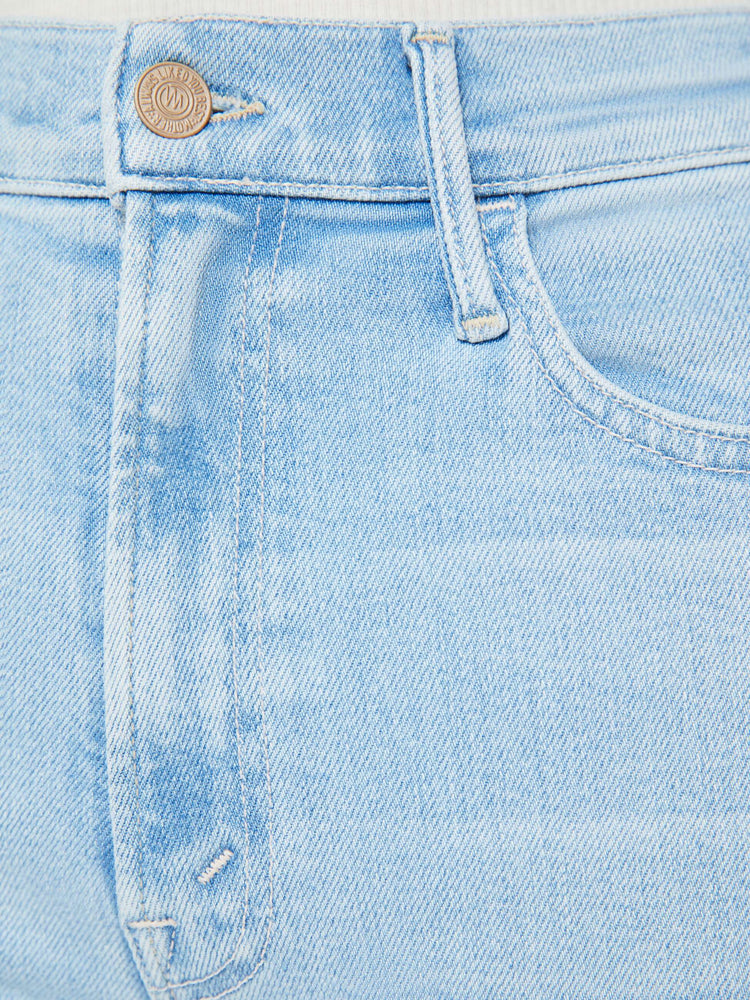 Make your move. This bestselling high-rise flare has an ankle-length inseam and a raw hem. Made from stretch denim, Ball's In Your Court is light blue with fading throughout.
