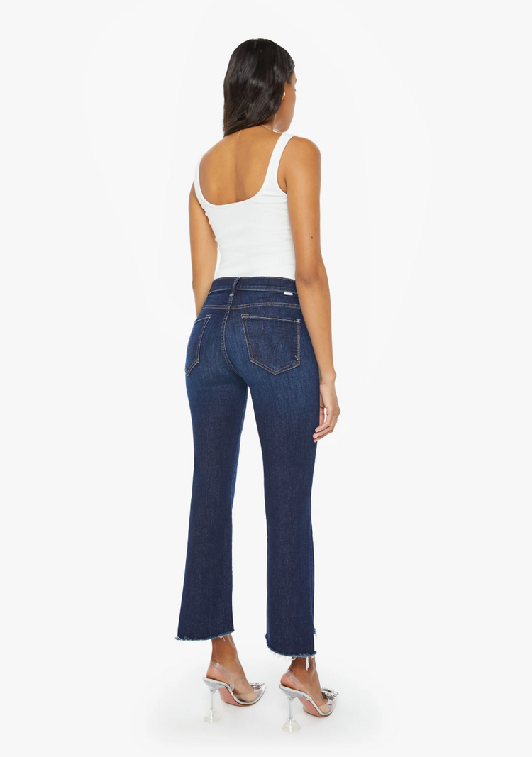 Can't touch this. This iconic high-waisted bootcut is cropped at the ankle with a frayed step-hem. Cut from stretch denim, Off Limits is a dark blue wash with whiskering and fading at the knees.