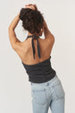 The After The Rain Rib Halter Top features a structured mock neckline and ties that fasten at the neck. Side ruching adds subtle shape through the body, creating a flattering fit with just the right amount of texture. An easy, minimalist staple with a slightly sporty edge.