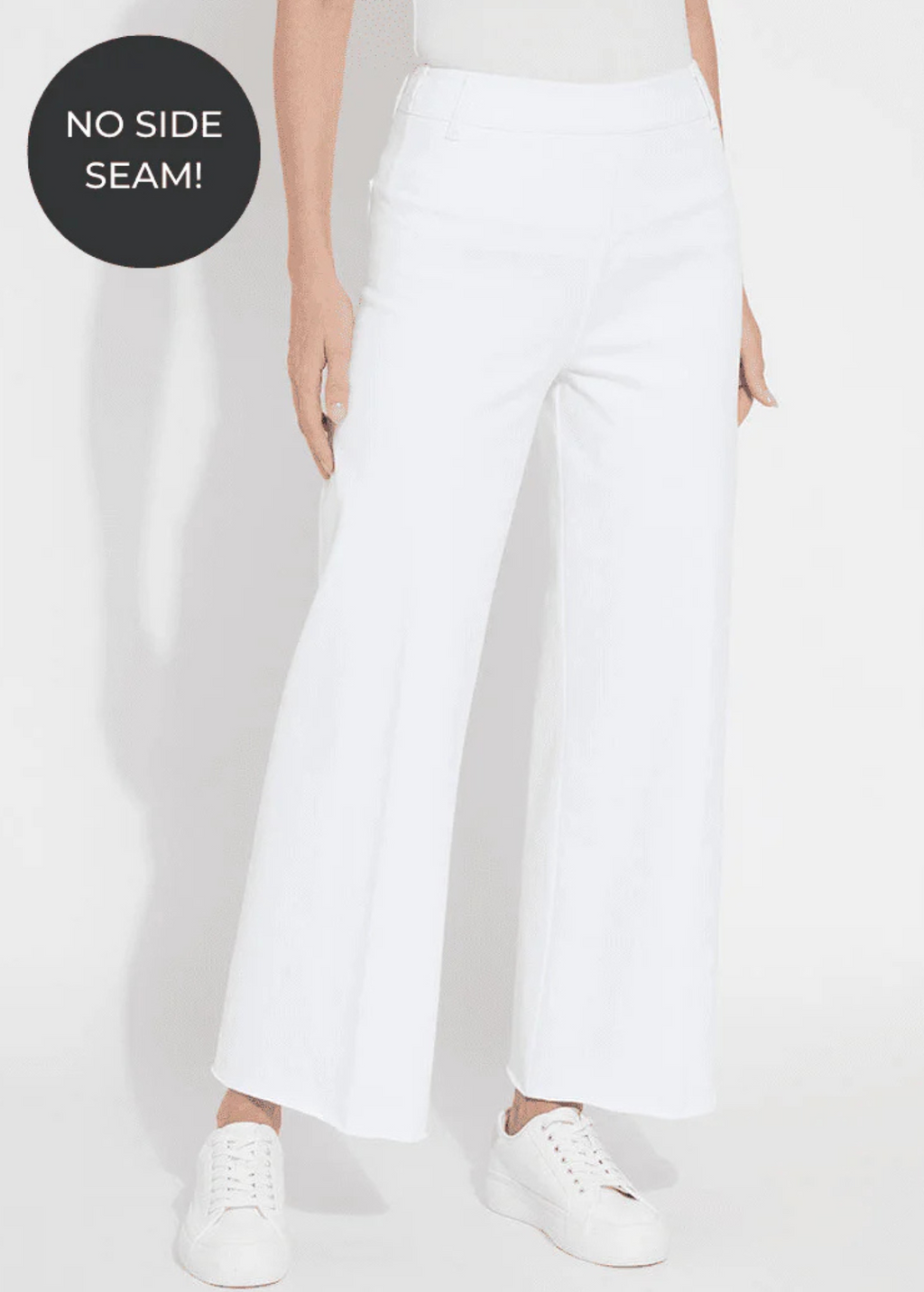 Made from 4-way stretch Knit Denim, these high-waisted, wide-leg jeans feature a concealed patented waistband, back patch pockets with gunmetal studs, beltloops and topstitching. Offering an extra-wide leg without side seams, the Erin High Waist Wide Leg Denim showcases a cropped, ankle length and raw-edge hem that’s simple to shorten. Style these wide-leg jeans with Larissa Satin Jersey Top, Lilith Cardigan Sweater and ankle booties.