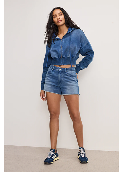 The Jeanius Good 90s Short features a high-rise fit and relaxed cut, offering a classic look with modern appeal. Perfect for keeping it cool and casual.