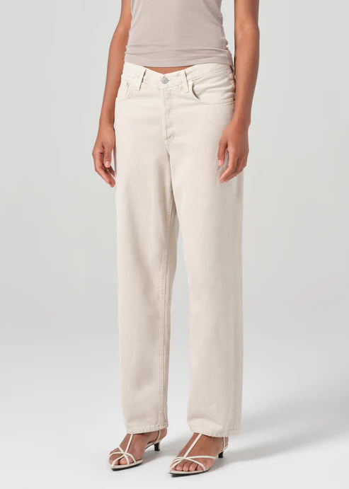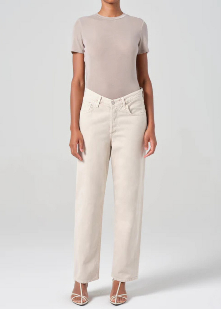 The V-Waist Baggy is designed for a flattering, waist-cinching fit with a sharp V-front angled waistband that flows into a fitted top block. Relaxed through the thigh and finished with a full-length straight leg silhouette, this new style offers effortless chic and timeless appeal. Crafted from regenerative cotton, it's the perfect pair to elevate your casual look. Style with sleek bodysuits or relaxed tees for an elevated, everyday ensemble.