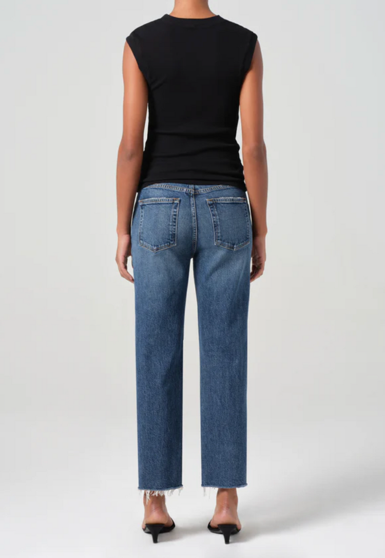 The Valen is a mid-rise vintage straight jean with an ankle-grazing inseam, designed with a flattering square top block for a sleek, tailored fit. Crafted from comfort stretch regenerative cotton, these jeans offer both structure and flexibility for all-day wear. Pair with a relaxed tee or a sharp button-down for an easy, elevated look, or keep it simple with an oversized sweater for a laid-back yet refined vibe.